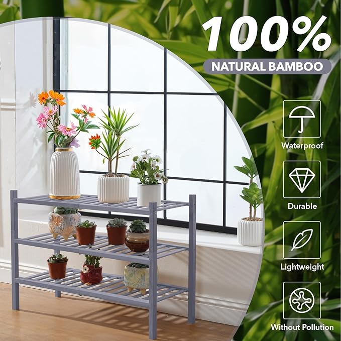 3 Tier Bamboo Shoe Rack Storage Organizer for Closet, Multifunctional Stackable Free Standing Shoe Shelf Organizer for Small Space,Entryway, Hallway, Bathroom27 x11 x20 (Grey, 3 Tier)
