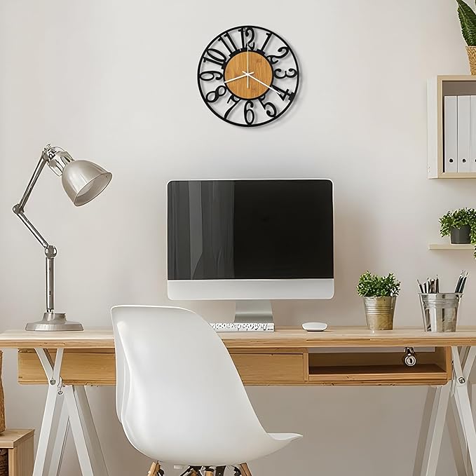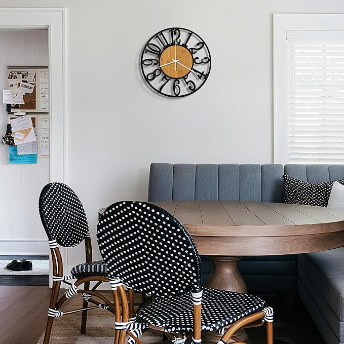 - 【Easy to Read】Round black metal number, wood wall clock is easy to read bold numbers on the surface with white hands. Make this metal clock the focal point of any room! Also, perfect for decorating any home decoration style.