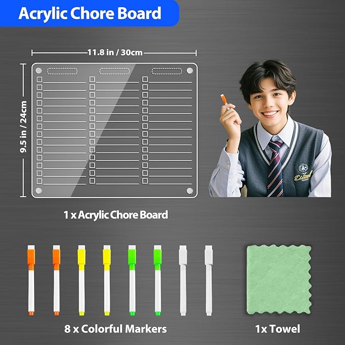- Minimalist Clear Acrylic Design for a Stylish Kitchen: This 12"x9.5" to do list board is crafted from glossy, transparent acrylic with smooth edges. The horizontal checklist board blends seamlessly into your fridge while adding a modern, elegant touch to your kitchen décor