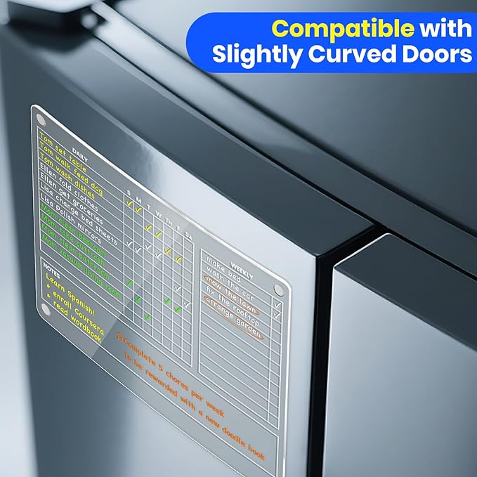 - Strong Magnets & Protection: Equipped with powerful magnets, this clear chore chart for teens firmly attaches to the fridge, staying in place even with frequent door use. Protective pads prevent scratches, keeping your fridge looking great