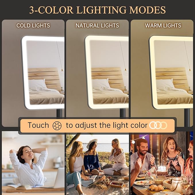 • ใ€๐€๐ฃ๐ฎ๐ฌ๐ญ๐š๐›๐ฅ๐ž ๐๐ซ๐ข๐ ๐ก๐ญ๐ง๐ž๐ฌ๐ฌ & ๐Ÿ‘-๐‚๐จ๐ฅ๐จ๐ซ ๐‹๐ข๐ ๐ก๐ญ๐ข๐ง๐  ๐Œ๐จ๐๐ž๐ฌใ€‘This vanity mirror with lights Long press the button to adjust the brightness ranging from 10% to 100%. 3 different colors-short press touch button can change the color of the light, Choose from cool, warm, or natural lighting modes to suit your preference and create the perfect atmosphere for any occasion.