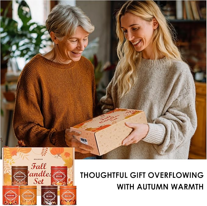 - 🍁 Fall Candle Set: This 6-pack scented candle set includes Hello Fall, Apple Pie, Spiced Pumpkin, Cinnamon Clove, Autumn Hearthglow, and Hot Cocoa. Each fragrance brings cozy fall memories to life—perfect for warming up your space and soul all season long