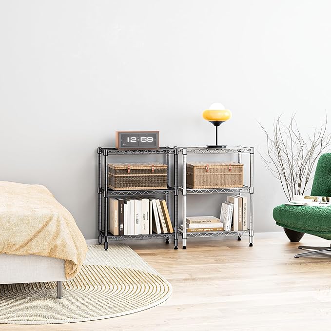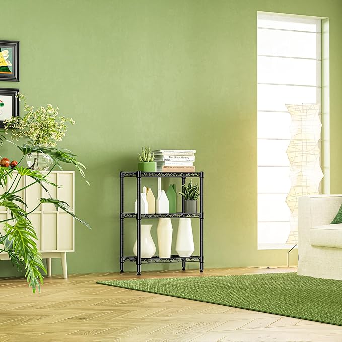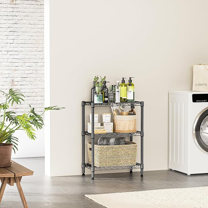 IZEUK 3-Tier Steel Storage Shelves, Heavy Duty Metal Shelf Wire Shelving Rack for Pantry, Kitchen, Living Room, or Office Organization (21.7" W x 11.8" D x 28.6" H, 750LBS, Black)
