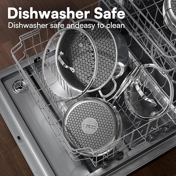 - Dishwasher Safe & Effortless Cleanup: this stainless steel cookware set is easy to clean and conveniently dishwasher safe, resists scratches from utensils, and maintains a sleek look for years to come, saving time for busy families and professionals