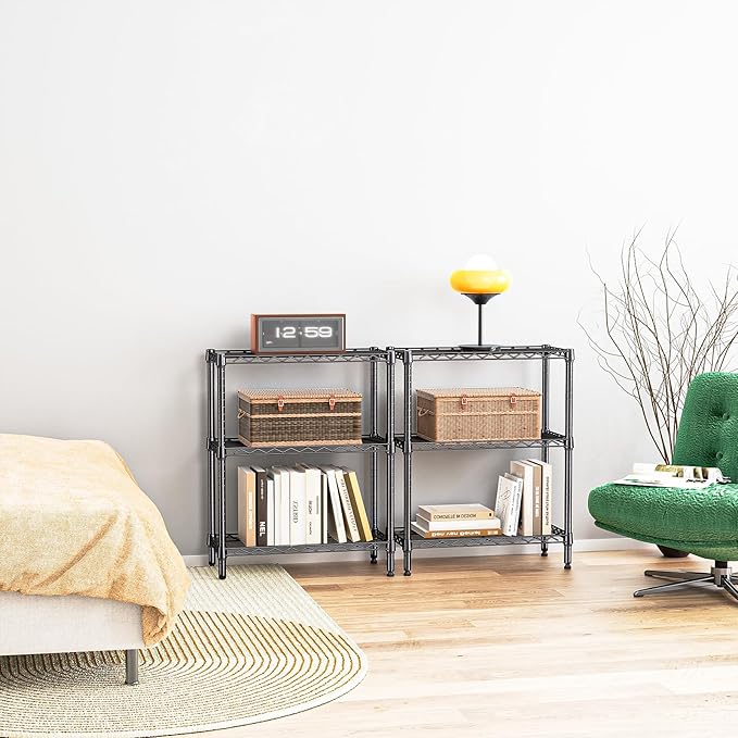 IZEUK 3 Tier Heavy Duty Steel Storage Shelves, Metal Shelf Wire Shelving Rack for Pantry, Kitchen, Cloakroom or Office Organization (11.8" D x 25.6" W x 31.5" H, 750LBS, Black)
