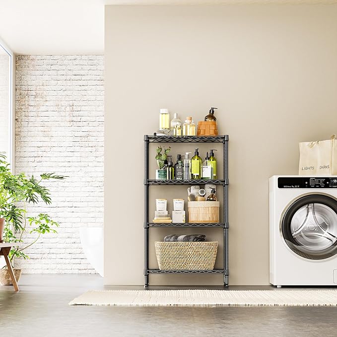 - 【Strong & Stable】Built with premium carbon steel, this 4-tier shelves organizer offers excellent strength and durability. With a total load capacity of 1000 lbs, it’s ideal as a pantry rack, bakers rack, or kitchen rack for storing tools, cookware, and everyday essentials.