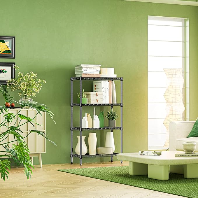 IZEUK 4 Tier Steel Storage Shelves, Heavy Duty Metal Shelf Wire Shelving Rack for Pantry, Kitchen, Living Room, or Office Organization (11.8" D x 25.6" W x 45.5" H, 1000LBS, Black)