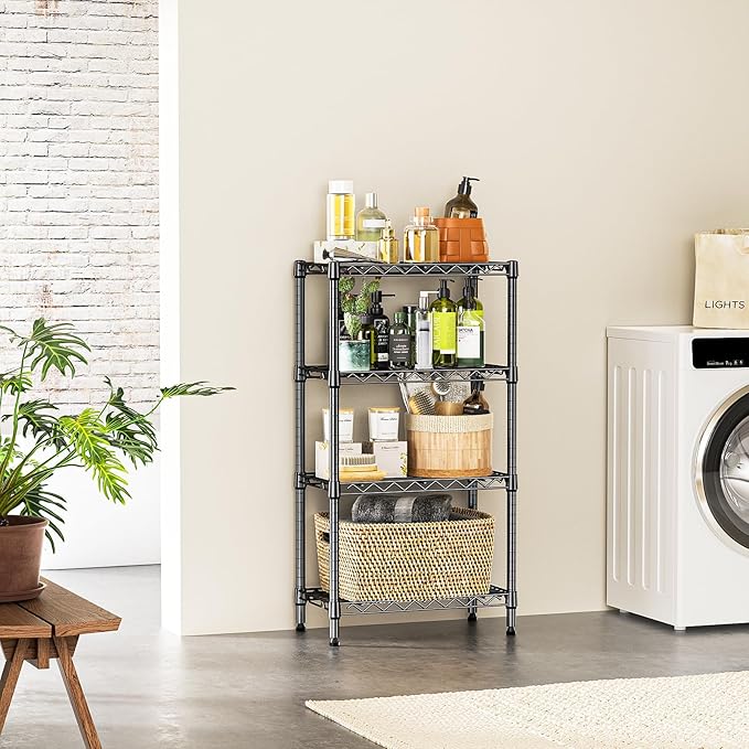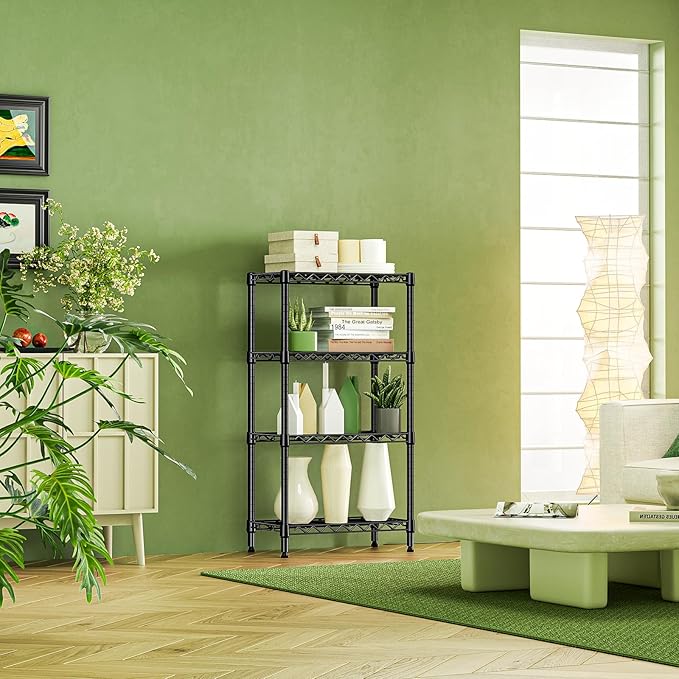 IZEUK 4 Tier Steel Storage Shelves, Heavy Duty Metal Shelf Wire Shelving Rack for Pantry, Kitchen, Living Room, or Office Organization (11.8" D x 21.7" W x 39.5" H, 1000LBS, Black)