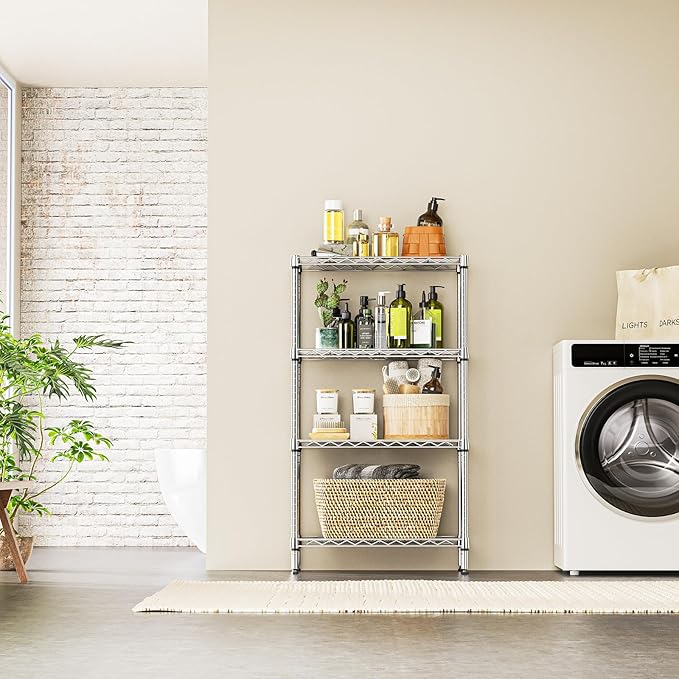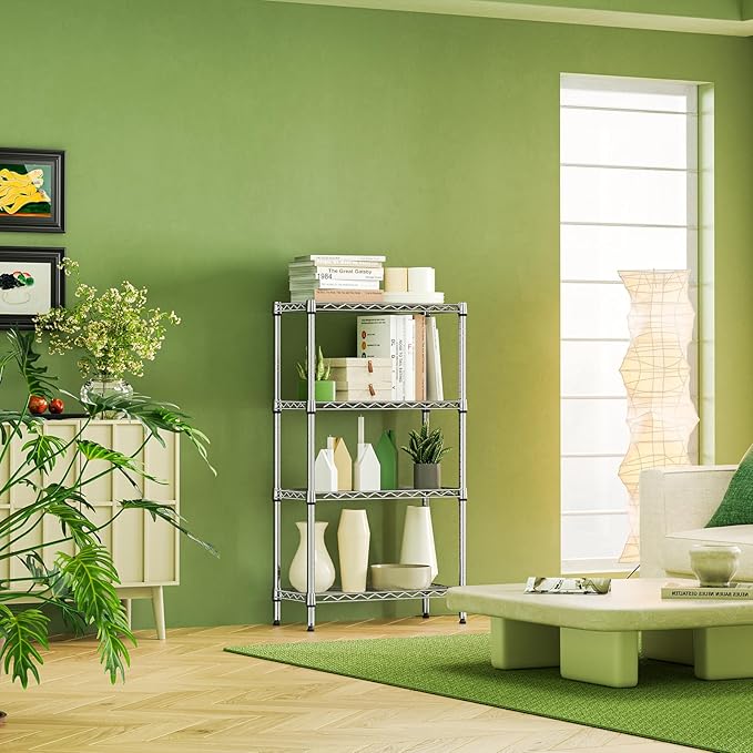 IZEUK 4 Tier Steel Storage Shelves, Heavy Duty Metal Shelf Wire Shelving Rack for Pantry, Kitchen, Living Room, or Office Organization (11.8" D x 25.6" W x 45.5" H, 1000LBS, Chrome)