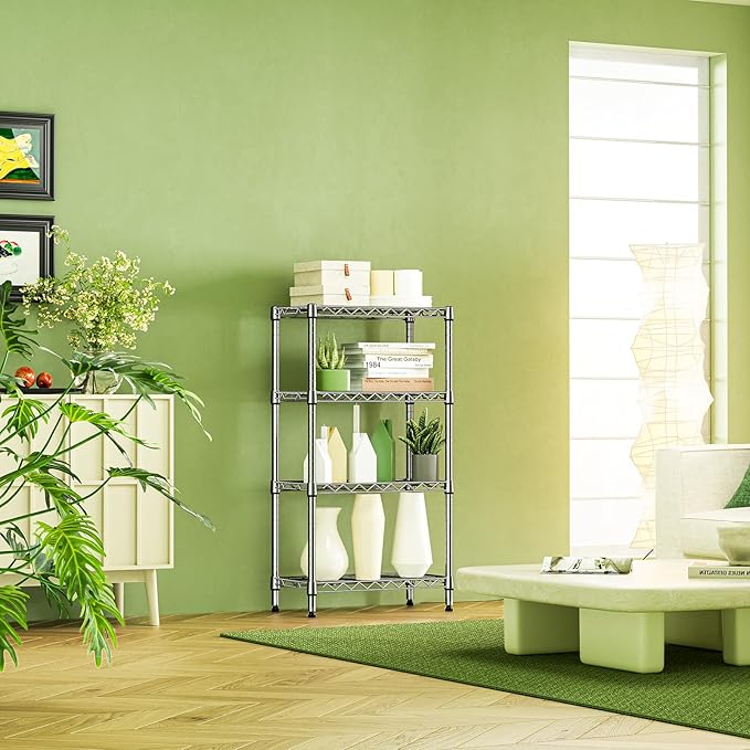 IZEUK 4 Tier Steel Storage Shelves, Heavy Duty Metal Shelf Wire Shelving Rack for Pantry, Kitchen, Living Room, or Office Organization (11.8" D x 21.7" W x 39.5" H, 1000LBS, Chrome)