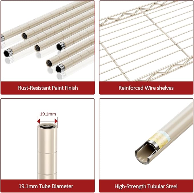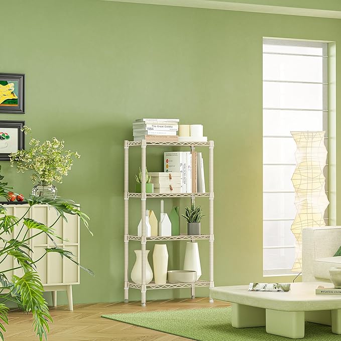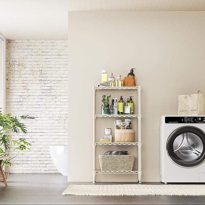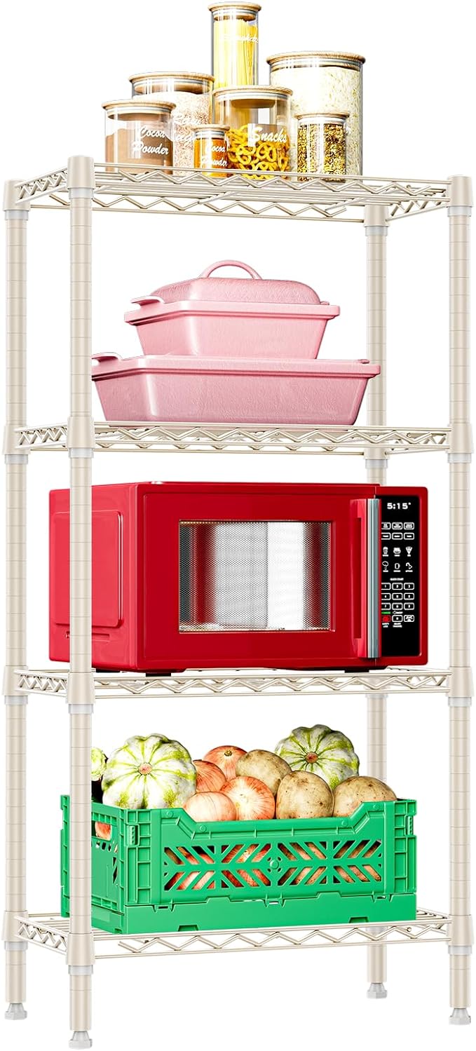 IZEUK 4 Tier Steel Storage Shelves, Heavy Duty Metal Shelf Wire Shelving Rack for Pantry, Kitchen, Living Room, or Bathroom Organization (11.8" D x 23.6" W x 47.5" H, 1000LBS, Light Tan)
