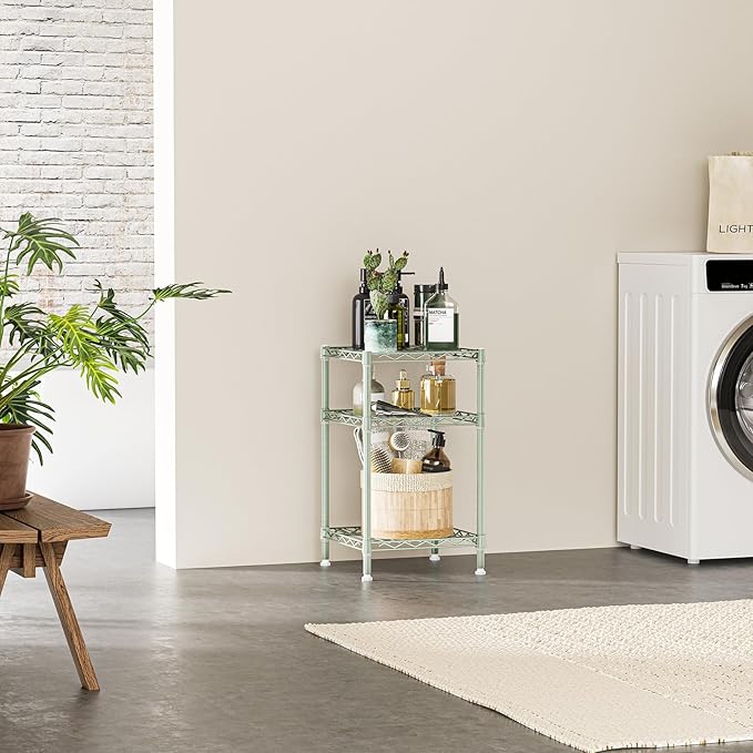 IZEUK 3 Tier Heavy Duty Steel Storage Shelves, Metal Shelf Wire Shelving Rack for Pantry, Kitchen, Cloakroom or Office Organization (13.8" D x 13.8" W x 25.5" H, 750LBS, Green)