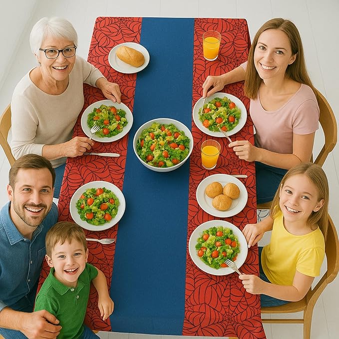 - ✔ 2-in-1 Eco Table Cover: Combine a vibrant red plastic tablecloth with a blue runner for effortless style—eliminating the need for separate pieces while reducing waste. A sustainable, space-saving upgrade from traditional table decor