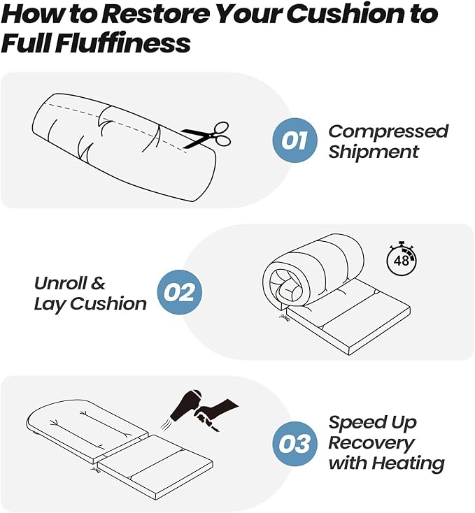 - Advanced Construction: Our chair cushions for outdoor furniture feature concealed stitching with reinforced anchor lines instead of traditional buttons, preventing filler shifts while maintaining consistent comfort and quality.