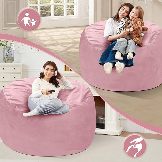 Homguava 4 FT Bean Bag Chair: 4' Bean Bags with Memory Foam Filled, Large Beanbag Chairs Soft Sofa with Dutch Velvet Cover-Light Pink