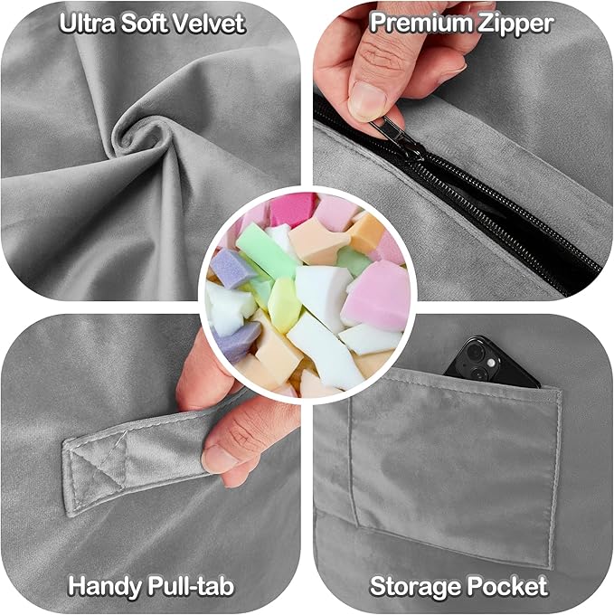 - Removable and Washable Cover: The cover of bean bag chair is removable and washable for further care. It is made of breathable premium dutch velvet with fine texture, soft and skin-friendly from touching. It is also anti-pilling and not easy to fade. You can easily put the beanbag cover into washer to clean it like new. Moreover its double stitched seams and hidden double-pull zipper ensures for super durability & strength