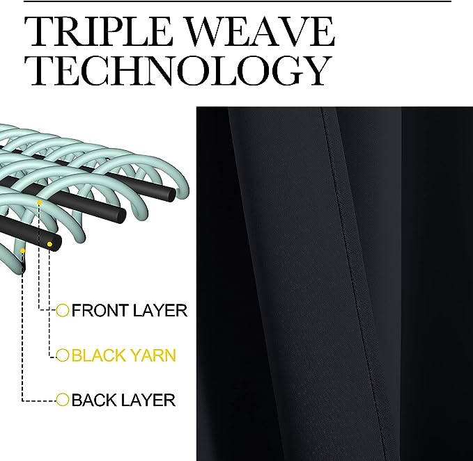 - Energy Smart: Triple weave blackout fabric balances room temperature by insulating against summer heat and winter chill. Protect your furniture, floors, and artwork from the ravages of the sun, the drapes will pay for themselves off over time.
