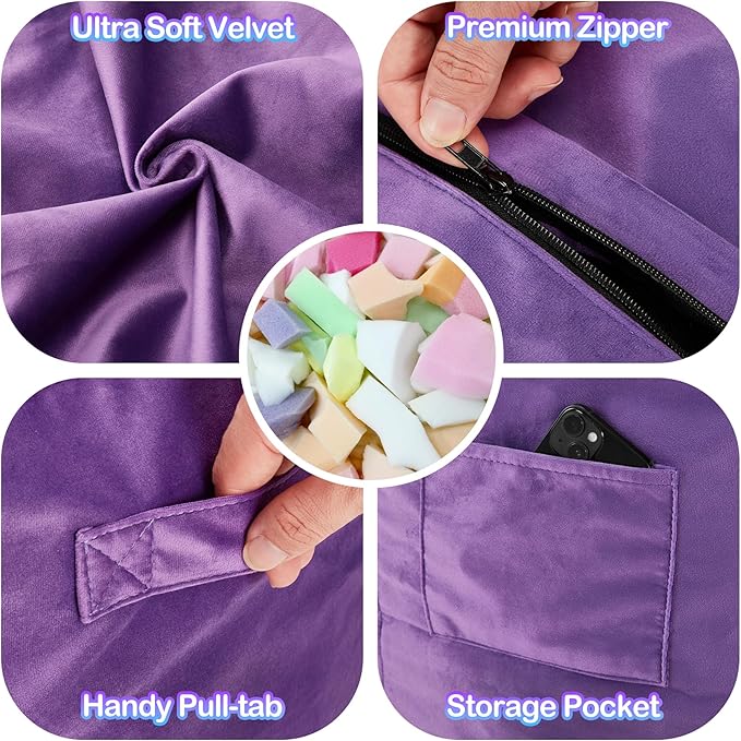 - Removable and Washable Cover: The cover of bean bag chair is removable and washable for further care. It is made of breathable premium dutch velvet with fine texture, soft and skin-friendly from touching. It is also anti-pilling and not easy to fade. You can easily put the beanbag cover into washer to clean it like new. Moreover its double stitched seams and hidden double-pull zipper ensures for super durability & strength