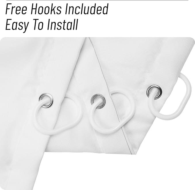 - Dimensions: 72W x 72H inches, includes 1 Black shower curtain and 12 plastic hooks(inner diameter length 1.81 inches, width 1.14 inches). With the stainless steel grommet holes at the top of the shower curtain, you can complete the installation easily