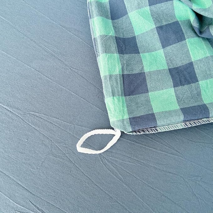 FACE TWO FACE Bedding Duvet Cover Set100% Washed Cotton Duvet Cover Linen Like Textured Breathable Durable Soft Comfy (Queen, Blue Green Grid)