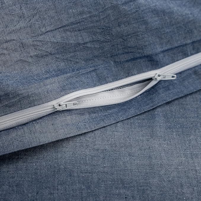 FACE TWO FACE Bedding Duvet Cover Set100% Washed Cotton Duvet Cover Linen Like Textured Breathable Durable Soft Comfy(California King, Navy Blue)