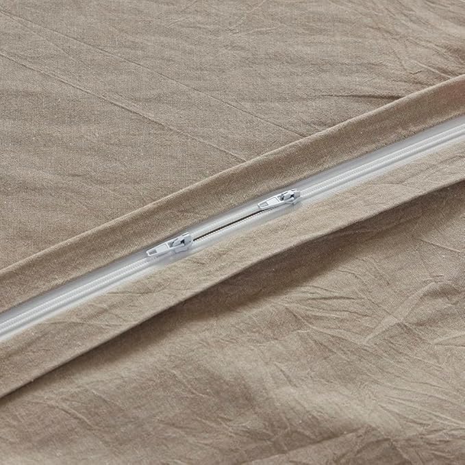 FACE TWO FACE Bedding Duvet Cover Set100% Washed Cotton Duvet Cover Linen Like Textured Breathable Durable Soft Comfy (Full, Khaki)