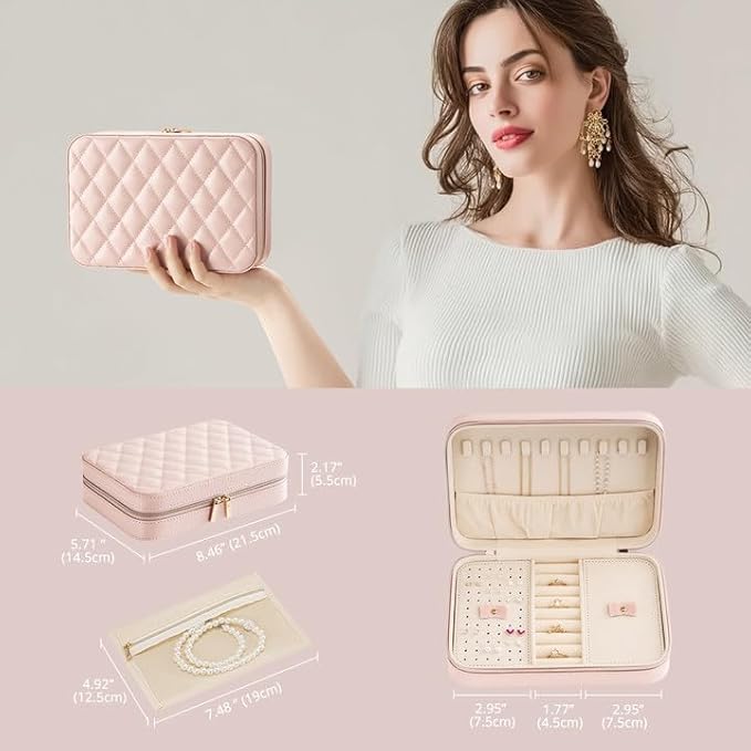 - Compact & Portable: Dimension: 8.46"W*5.71"D*2.17"H (21.5 x 14.5 x 5.5 cm). Easily fits into handbags or suitcases. This travel jewelry case resists deformation and keeps shape under luggage compression. Perfect for traveling or daily use, ensuring favorite jewelry remains always at hand