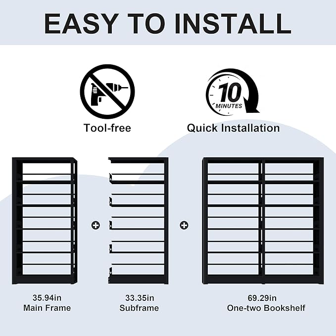 - 【Adjustable Shelves】 The height of the shelf is adjusted according to your needs and can hold both normal size and large size books. You can also use it as a shelf for tools, toys, and displays.Black or white bookshelves for every scene