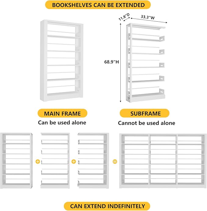 - 【Adjustable Shelves】 The height of the shelf is adjusted according to your needs and can hold both normal size and large size books. You can also use it as a shelf for tools, toys, and displays.Black or white bookshelves for every scene