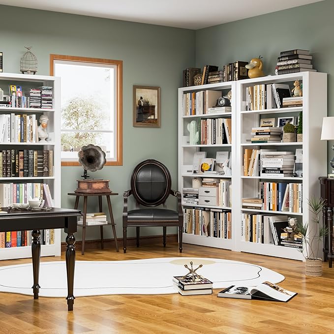 69" Bookshelf,5-Tier Bookshelf, Large Bookcases and Bookshelves,Taller and Wider Metal Storage Organizer, Sturdy Bookshelf for Living Room,Home Library (White)