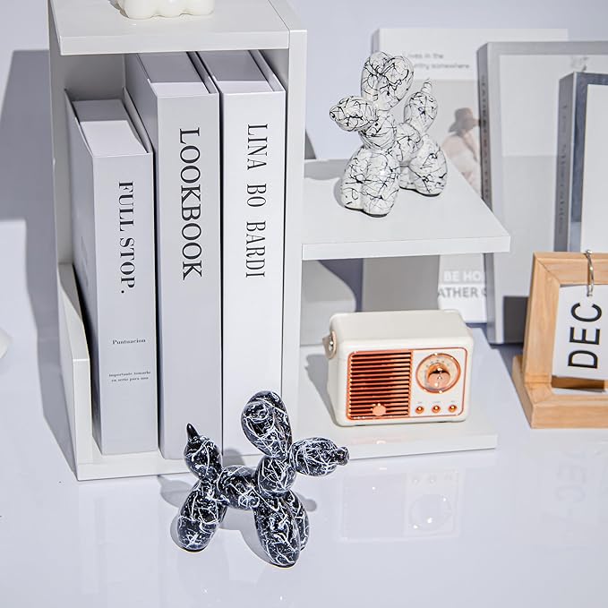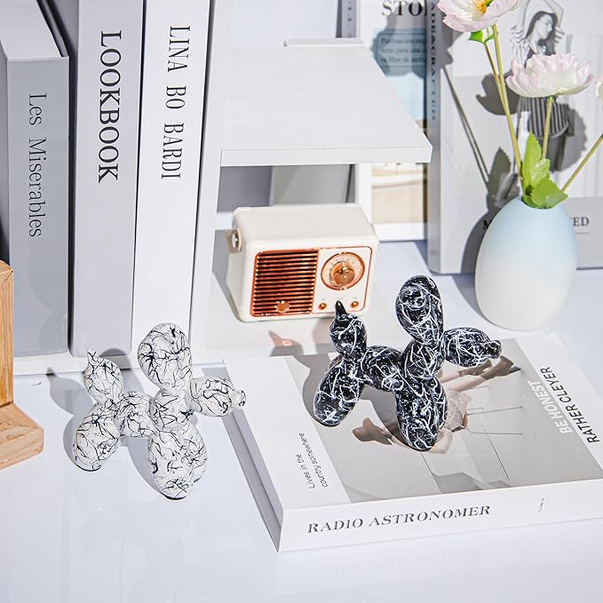 Creative Balloon Dog Statues Small Ceramic Animal Sculpture Modern Home Decor Living Room Desktop Decorations Bedroom Office Cabinet Ornament (Black-B)