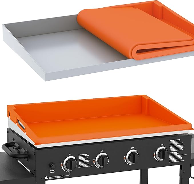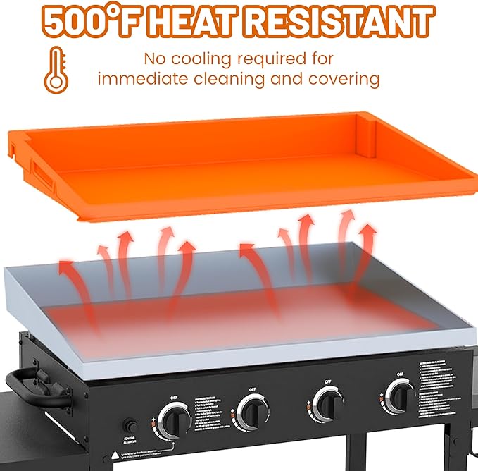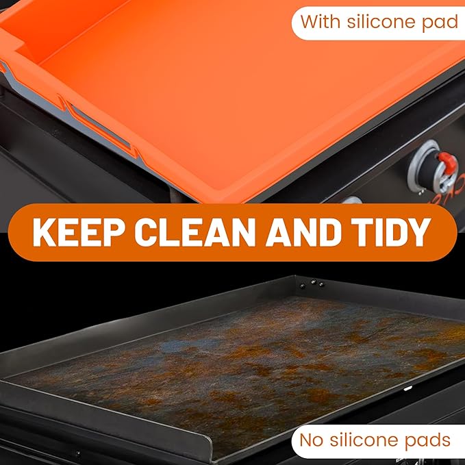 - 【Dual-Purpose Silicone Mat】Multi-functional design serves as both a protective cooking surface for bacon, eggs, and pancakes, and a durable cover that shields your griddle from rain, sunlight, and environmental debris. Non-slip textured surface ensures stability during use.