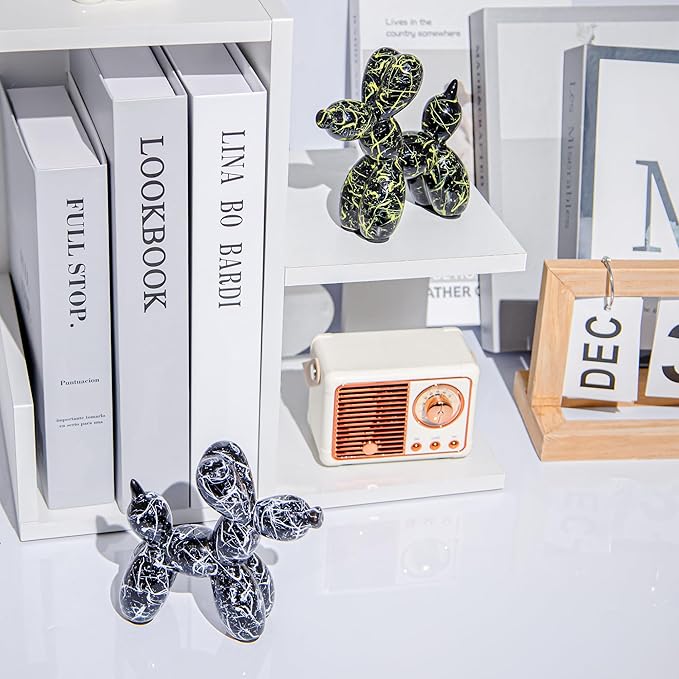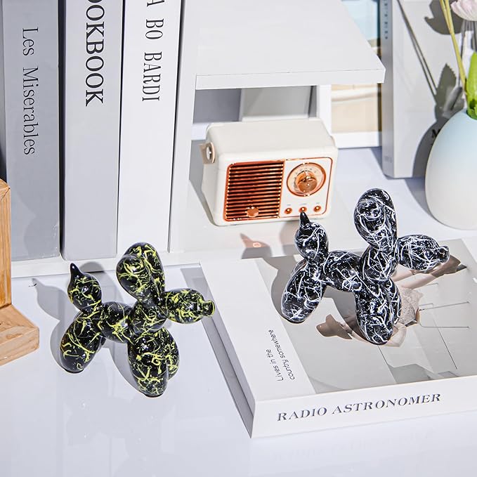 Creative Balloon Dog Statues Small Ceramic Animal Sculpture Modern Home Decor Living Room Desktop Decorations Bedroom Office Cabinet Ornament (Black-C)