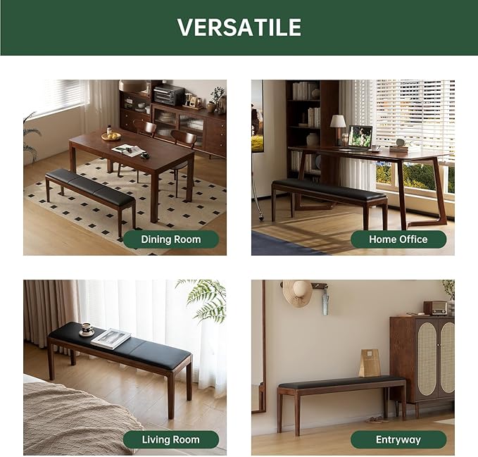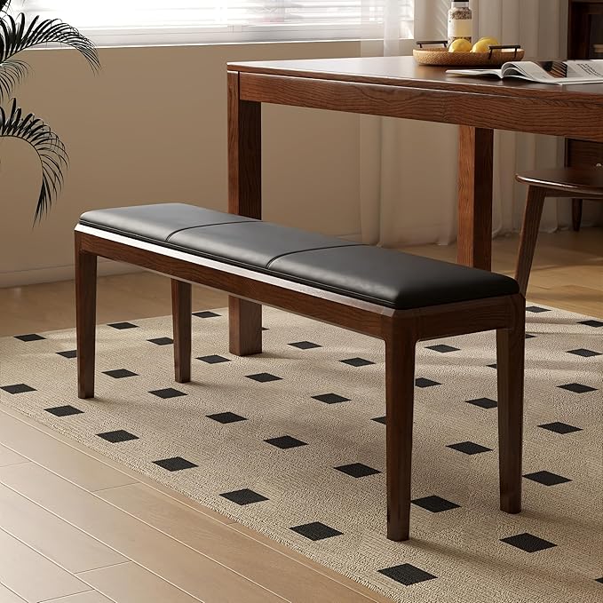- [Elegant Design] Indoor leather dining bench owns solid oak oak's natural wood grain in bench leg frame are visually light and modern, and the excellent tailoring and high-grade materials make it aesthetically pleasing. It can also be placed in a variety of occasions, and it is a good choice to be placed at the end of the bed or entryway or at dining table.