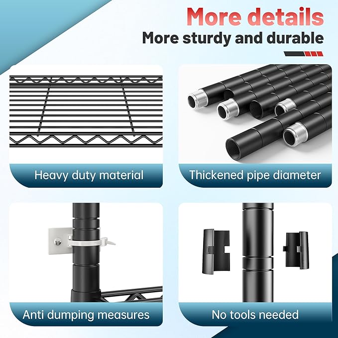 - Special Feature : 6 Tier storage shelves, Adjustable, Metal Shelving for storage, Wire Shelving Unit