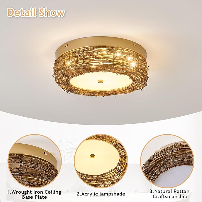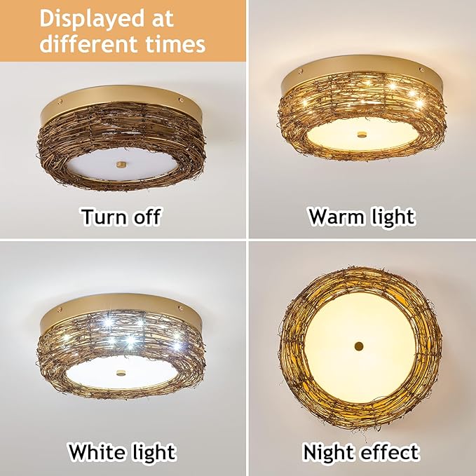- Size & Bulb Requirement - The size of this boho ceiling light is D11.81" x H 3.94"."This fixture comes with built-in LEDs-noneed to buy separate bulbs! You get threecolor temperatures: warm white.davlightand neutral white. Simply use your wallswitch to cvcle through the settings:iustflip the switch once to change the lightcolor."