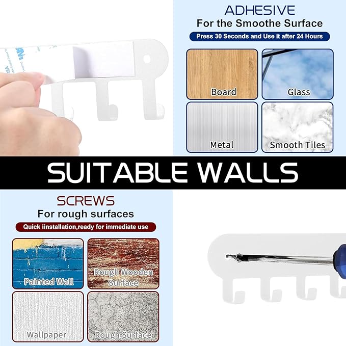 - 🗝️【Excellent Quality Control】The Key Holder Wall Mount,self adhesive key holder for wall is made of high-quality stainless steel, Wall Mount Key Holder is sturdy and thickened, not easy to deform, effectively prevents rust, corrosion and oxidation, and key rack is scratch-resistant.