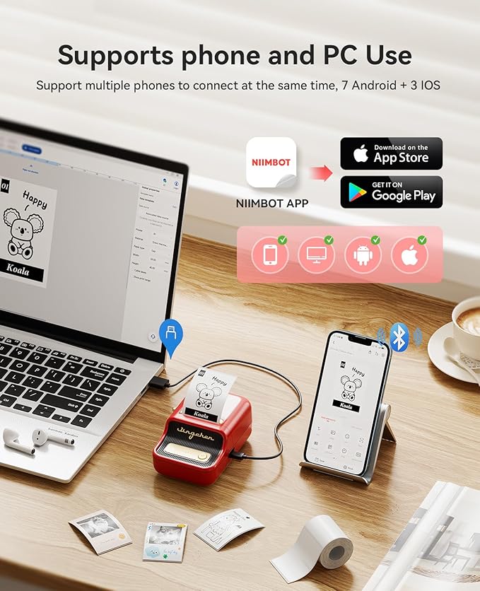 - 【Picture & Color Printing】B21 Pro label machine can print in both red and black colors at the same time. NOTICE: photo printing and color printing require the use of special label paper