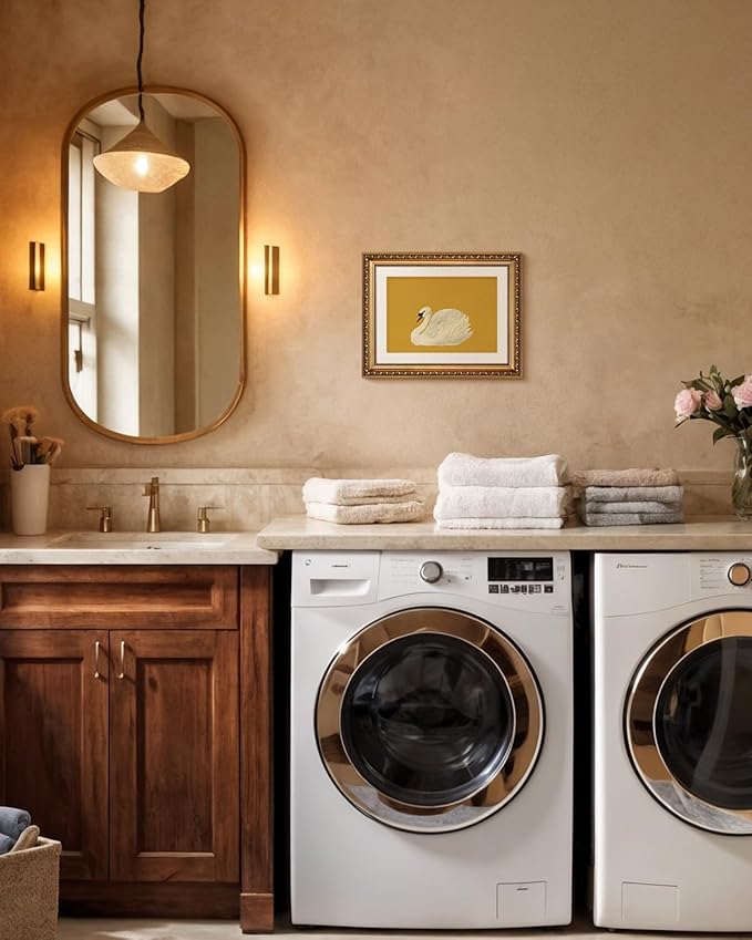 VIYYIEA Gold Framed Wall Art, Swan Yellow Canvas Print Home Decor Vintage Art Painting Picture Bathroom Wall Decor, Animals Artwork for Living Room Bedroom Kitchen Office - 14L x 11W