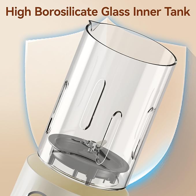 - 【FDA-compliant Material】The design incorporates an inner container made of high-borosilicate glass that meets FDA standards and a powerful 16-blade stainless steel blade system. The high-borosilicate glass inner container offers several advantages over stainless steel, including minimal odor retention, easier cleaning, superior high-temperature, resistance to scratches, and corrosion resistance. The 6-blade stainless steel blade system achieves a smoother, more refined blending effect.