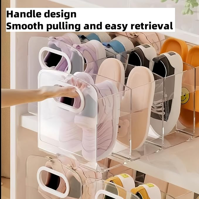 - Portable and partition design: This acrylic kids shoe rack has built-in portable designs on both sides, making it convenient for us to move it. Meanwhile, there is a partition on the side, which can prevent shoes from falling off.