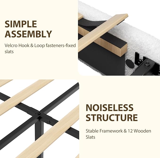 - Strong & Quiet-Thick wood and sturdy alloy make the bed frame durable. EVA strips keep it quiet. Sleep soundly in a stable, noise-free space