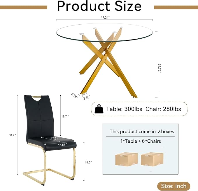 - ➤【Easy Assembly & Quick Service】- The modern dining table set for 6 people comes with all parts and clear instructions for easy assembly. The glass round dining table set come with several packages. If you have any questions about the glass kitchen table and chair set, just feel free to contact us and we will offer quick and satisfactory service for you.
