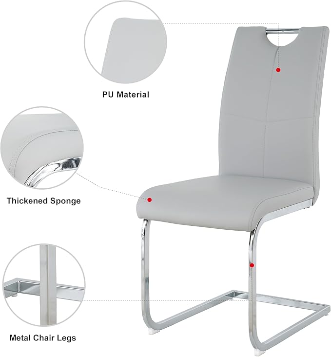 - ➤【Ergonomic & Comfortable Dining Chairs】- The pu leather dining chairs are complete with metal legs for stable and strong support. Good quality pu leather and a soft padded seat really feel soft when you sit on it. Ergonomic curved high back provide day-long comfort without feeling back pains. Chair Dimension is 22.6"L*16.5"W*38.3"H.