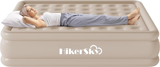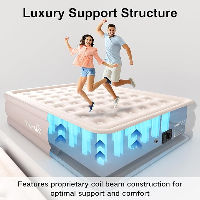 - QUICK SELF INFLATING: The queen air mattress has a built-in pump with dual air chambers, dual air chambers work simultaneously. It only takes 3 minutes to inflate and deflate.