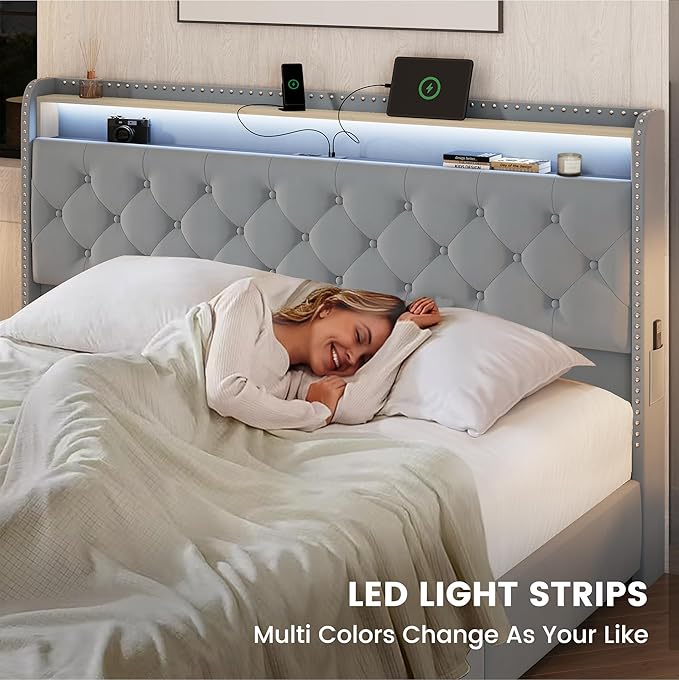 - [Convenient Charging Station]: The LED queen size bed frame with its built-in outlet and 1 usb and 1 type-c ports can make you easily charge the devices while in bed