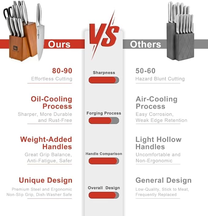 - 【Premium Finishing】Oil-Hardened blades staysharp longer and highly corrosion-resistant even with minimal care.