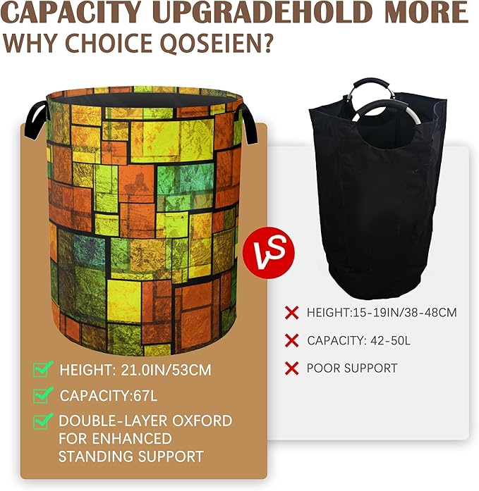 Laundry Basket,Colorful Stained Collapsible Laundry Baskets,Glass Wall Waterproof Oxford Hamper with Handles for Bathroom Bedroom Nursery Home Storage 16"x20"