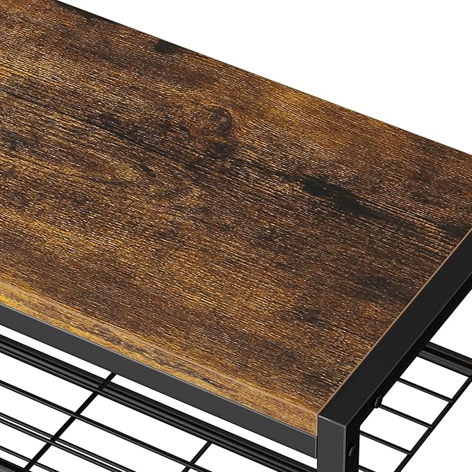 - Industrial Shoe Organizer with Large Tabletop: Made from engineered wood and metal mesh shelves, this shoe storage rack is built for durability and long-term use. It features a stylish wood accent design, making this tall shoe rack decorative enough to fit in any corner of your home.