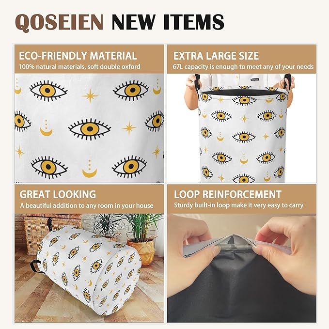Laundry Hamper,Magic Evil Eye Laundry Basket,Waterproof Oxford Cloth Storage Basket with Handle for Clothes Books Nursery Home Storage Sundries 16"x20"
